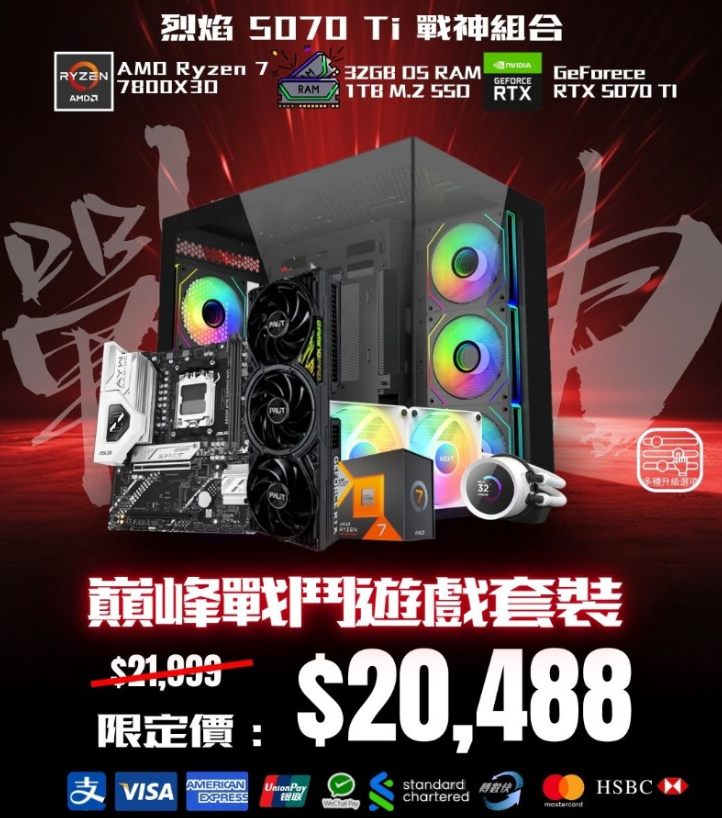 5070 Ti 烈焰 戰神分期組合 | 7800X3D | 32GB RAM | 1TB | WIFI |