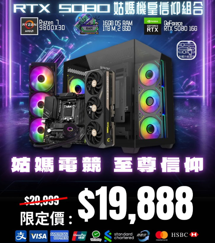 9800X3D 5080 姑媽機皇信仰組合 | 8核16線 | RTX5080 | 1TB | DDR5 |